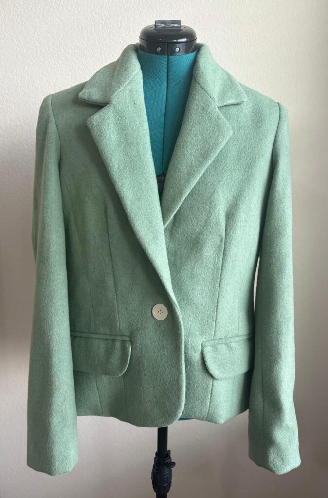I handmade this garment in my Basic Women’s Tailoring Class with a light green wool fabric.